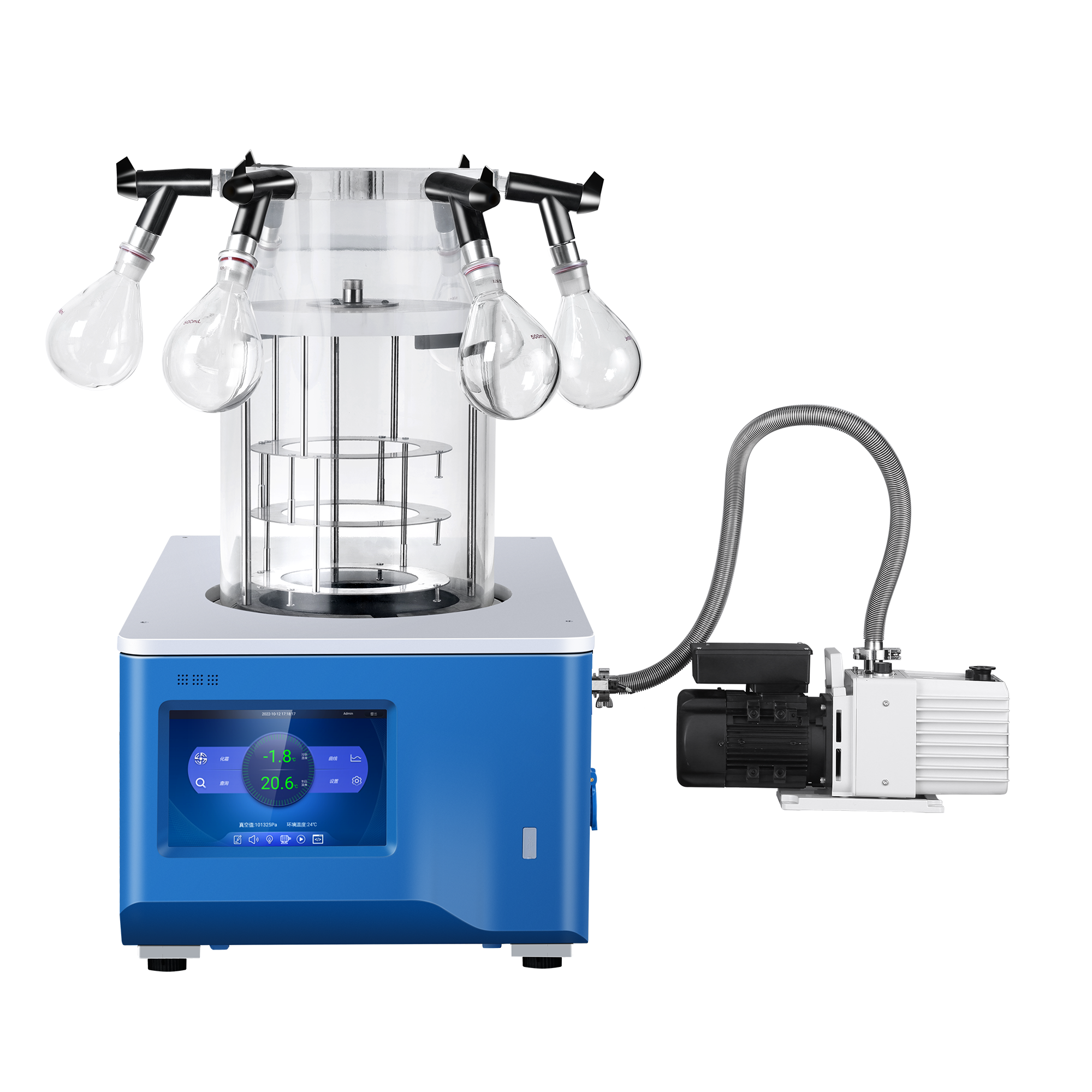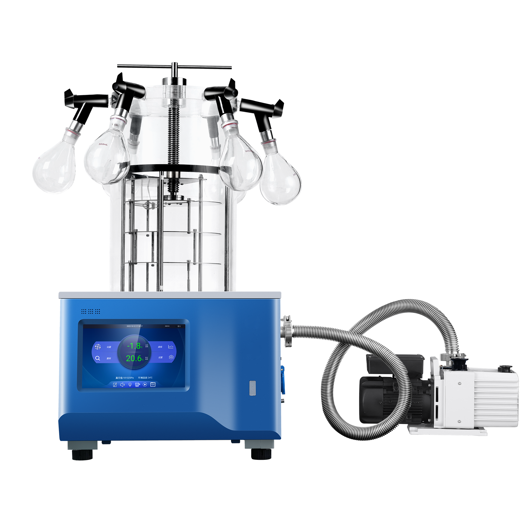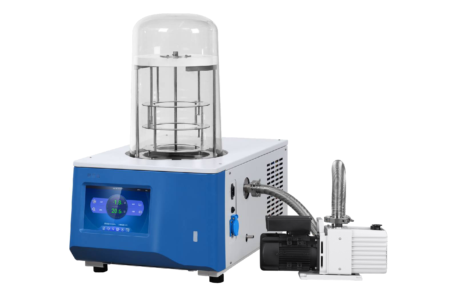 Flera larm, inklusive övertidskylning av kylfällan, påminnelse om byte av vakuumpumpolja, fel på temperatursensorn/fel på temperatursensorn för kylfällan, fel på vakuumsensorn, fel på kondensorsensorn, fel på sensorn för omgivningstemperatur, onormal kylning, överström i motorn, smutsigt stopp i kondensorn, vakuumlarm, larm om att värmelampans livslängd är mindre än 10